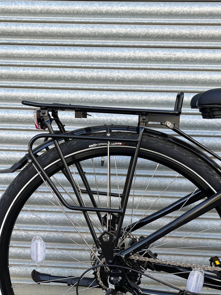 Hydroformed alloy frame equipped with Zoom 63mm fork. Driven by Shimano Altus 8 speed drive train and rolling on Signum 700c” wheels with CST reflective side wall tyres. Powered by the Bafang M200 mid motor and in tube 500wh battery. The Peak Trail 2 model also comes with full-length mudguards and robust pannier racks to ensure you are prepared for all situations. Also loaded with features to equip you well in all conditions; built in front and rear lights for best visibility and safety a kickstand and E-Bike specific saddle.